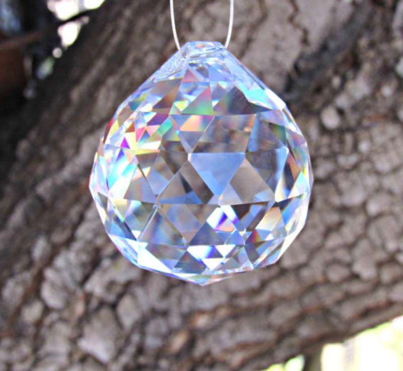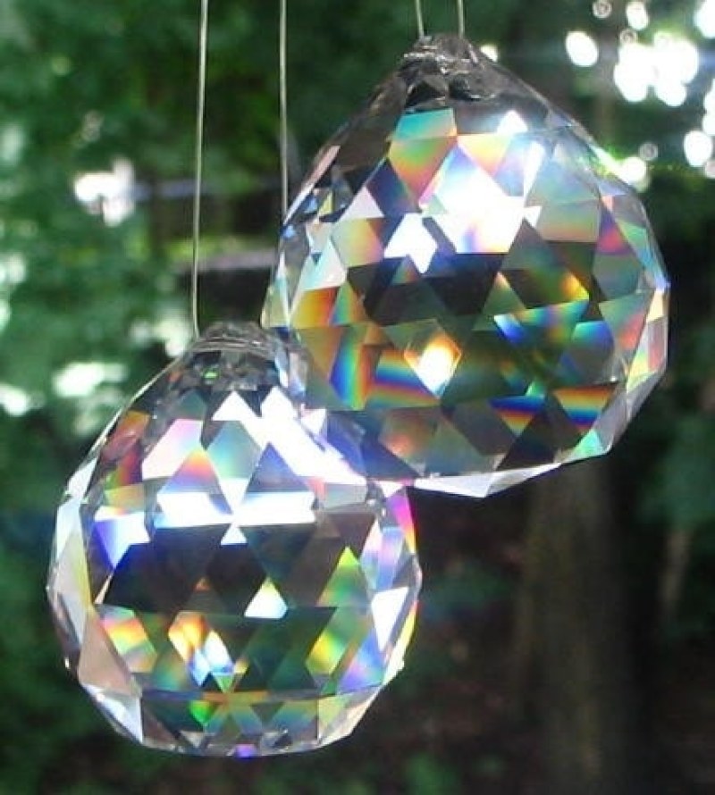 Suncatcher ini adalah hiasan kaca yang yang berbentuk pendant berukuran diameter 40 mm, mempunyai banyak facet pada permukaannya. Jika terkena sinar matahari, akan menghasilkan banyak proyeksi warna-warni pelangi pada tembok yang menghiasi ruangan.